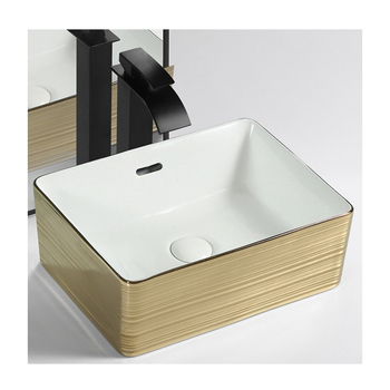 อ่างล้างหน้าทรงสี่เหลี่ยมสไตล์เรียบง่ายสีทองขัดเงาอ่างล้างมือบนโต๊ะเซรามิกอ่างล้างหน้าศิลปะ lavabo